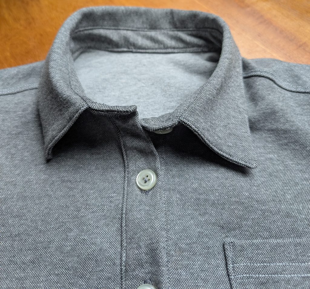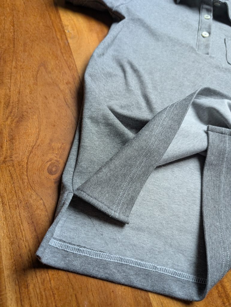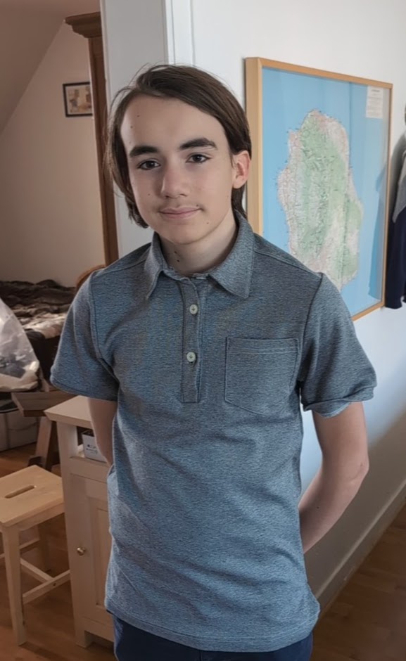 Première tentative d’un polo pour Baptiste pour le changer un peu de ses t-shirts. Patron Jalie top, assez clair même si probablement pas idéal pour débutant. Le tissu est un piqué chiné 300g/m², 66% polyester 30% viscose 4 % elasthane, qui a un très beau rendu.