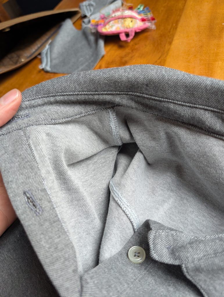 Rien à redire sur la confection, la patte se fait très facilement, le col n’est pas évident à monter, notamment parce que les valeurs de coutures incluses sont assez petites (6mm). Il est bien de faire à la main au moins les deux extrémités.